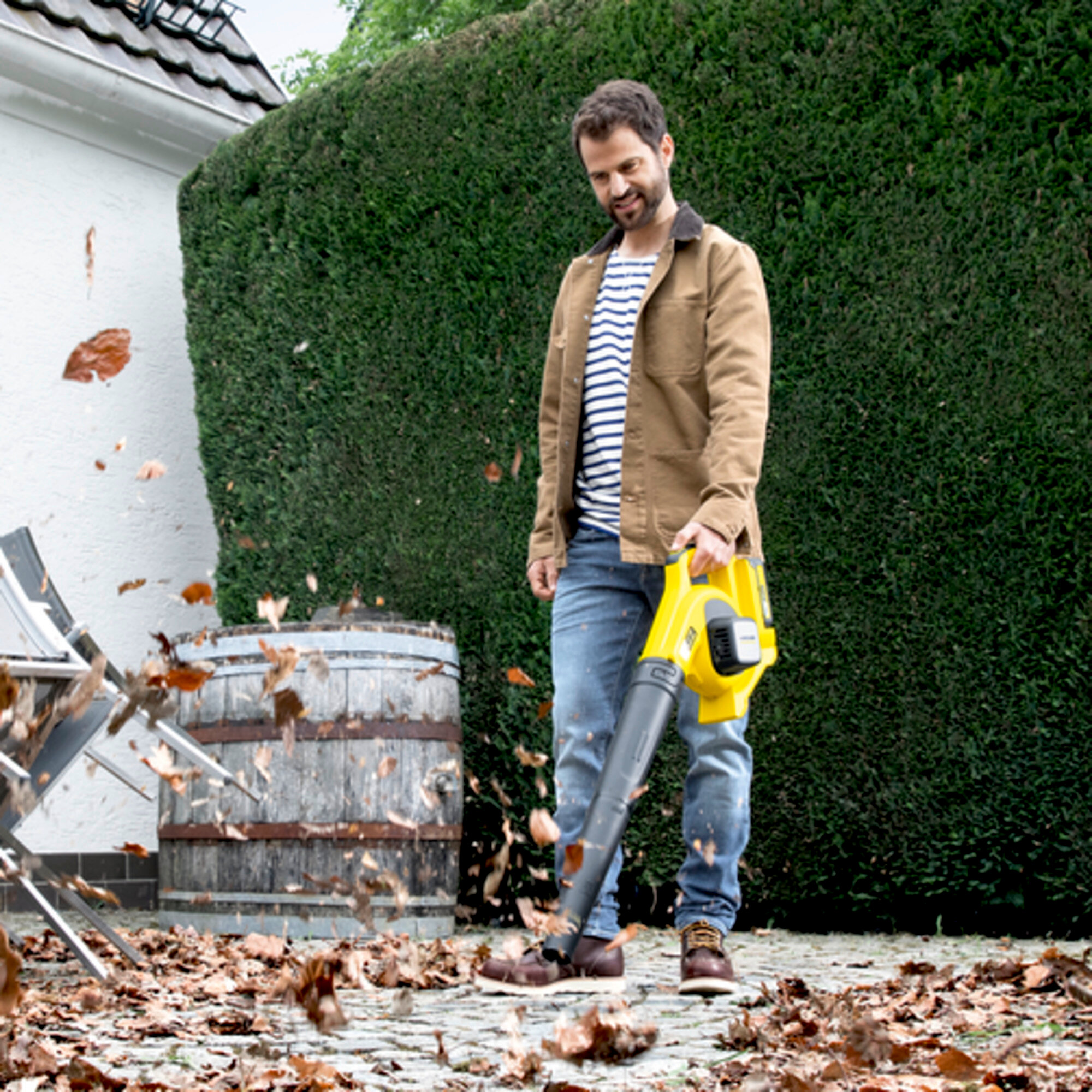 Le kit souffleur de feuilles sans fil 18 V de Kärcher fournit des performances puissantes pour tous les travaux liés aux feuilles mortes. Le souffleur atteint une vitesse d'air maximale de 210 km/h et offre une prise en main parfaitement équilibrée et ergonomique. Afin de pouvoir décoller les feuilles et les déplacer de manière ciblée, le souffleur de feuilles dispose d'une buse plate amovible pourvue d'un bord de raclage. Une batterie interchangeable Kärcher Battery Power 18 V ainsi qu'un chargeur sont inclus. Caractéristiques : Appareil sans fil - 1 - Plateforme de batterie - Plateforme de batterie 18 V - Vitesse d'air - max. 210 - km/h Débit d'air - 220 - m³/h Réglage de la vitesse - Non - Type de batterie - Batterie lithium-ion interchangeable - Tension - 18 - V Capacité - 2.5 - Ah Puissance par charge de batterie - max. 400 (2,5 Ah) - m² Autonomie par charge de la batterie - max. 22 (2,5 Ah) - min Temps de charge de la batterie avec un chargeur standard - 300 - min Courant de charge - 0.5 - A Connexion au secteur du chargeur - 100 ? 240 / 50 ? 60 - V / Hz Couleur - jaune - Poids sans accessoires - 2 - kg Poids emballage inclus - 3.9 - kg Dimensions (L × l × h) - 975 x 170 x 305 - mm Équipements : Version - Batterie et chargeur compris Batterie - Batterie rechargeable Battery Power 18 V/2,5 Ah (1 pièce) Chargeur - chargeur standard Battery Power 18 V (1 pièce) Tube de soufflage - Oui Buse plate avec grattoir - Oui